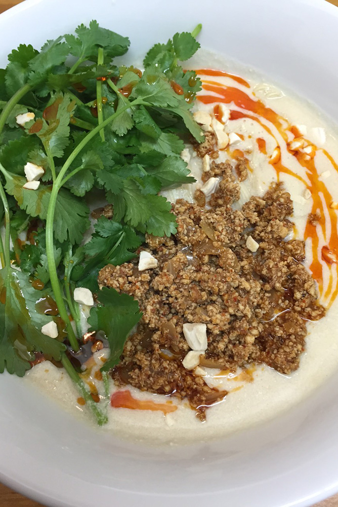 China is the birthplace of ramen, but Chinese ramen and Japanese ramen are fundamentally different. Chinese ramen is food for the masses, to fill them up, while Japanese ramen has evolved in its own way in Japan. The serving is visually appealing and the price is high. In China there is a Japanese ramen chain called Ajisen, and I’ve eaten there. But Ajisen’s fl avor is localized for Chinese tastes and I just saw it as “it’s something like this”. When I came to Japan and started working in a ramen restaurant, I was shocked to see for the fi rst time how much time is lavished on making the ramen.