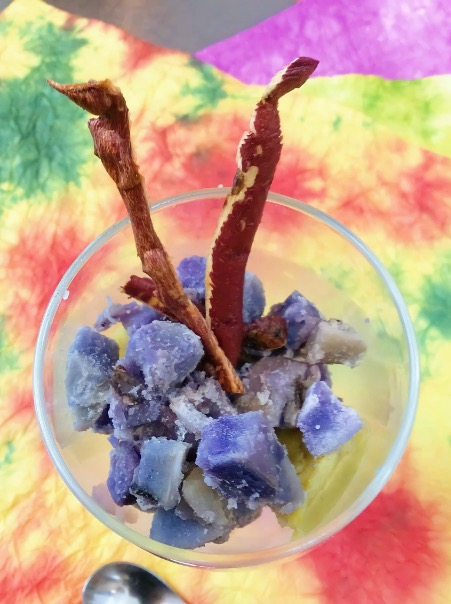 Shiori: The sweetness of the sweet potato mousse, which melts in the mouth like liquid nitrogen espuma, and the aroma of the sweet potato skin confit have received significant attention at events such as Miss Universe and children's cafeterias.