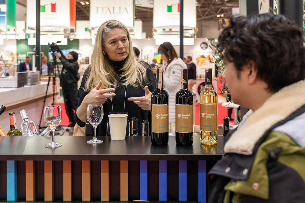 There were 51 exhibitor companies from Türkiye at Foodex this year. That's an increase of 40% from 29 last year. They were of course offering olive oil, dried fruits, nuts, and pasta, which are all staples of Türkiye, but this year Turkish wine was also introduced. Many visitors who tasted the wine said they would love to try it with Turkish cuisine.