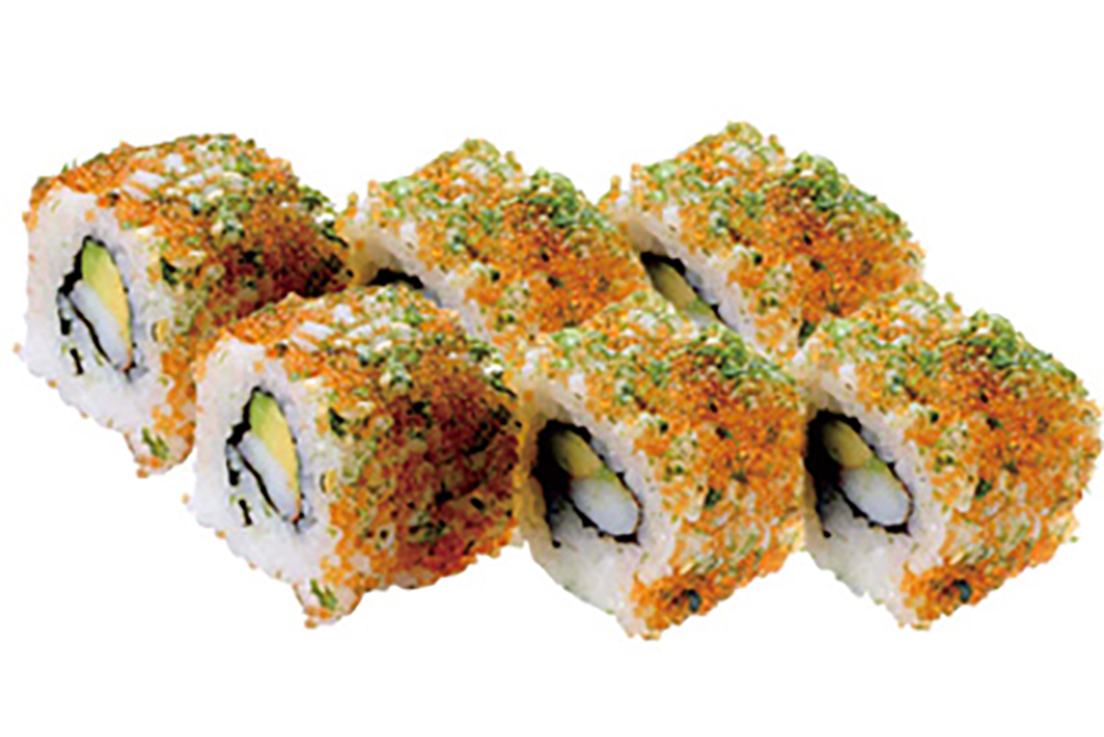 The California Roll is now the best known “Japanese food” around the world. To get Americans to accept Sushi, California Rolls have the raw ingredients and nori, which might be visually off-putting, folded into the interior.