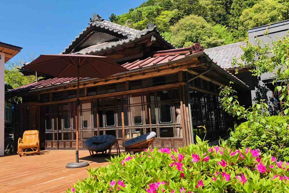 Ebisuya, an inn for rental as a whole building, is a 90-year-old mansion that once belonged to the Mochizuki family, a prominent family that made its fortune in the area. It has now been restored to its original state. It has an open terrace facing the mountain greenery and the river. The purely Japanese-style rooms retain the design touches of the artisans who made them, while the Western-style rooms are steeped in Taisho-era culture. In addition, the whole interior is adorned with many artworks by contemporary artists. We hope you will spend time at Ebisuya, a delightful inn where old and new cultures are woven together, and enjoy local food and drinks to your heart's content.
