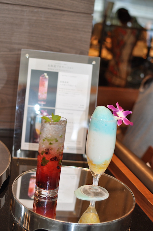 The first dish, “Horse radish, Chicken and Summer Vegetable Soup” made with chicken and vegetables from Hokkaido, is served at the table along with a drink of your choice. The restaurant offers alcoholic and non-alcoholic beverages from Hokkaido. For alcoholic beverages, you can choose from Otaru Kerner Sparking Wine, red and white wine from Hokkaido, North Island Beer Weizen and Brown Ale, Hokkaido Haskap Mojito, and 100% Milk Peach Yogurt Smoothie. The last two cocktails are also available as non-alcoholic.