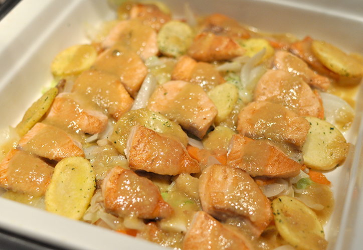 “Salmon and Vegetable with Miso and Butter Sauce”