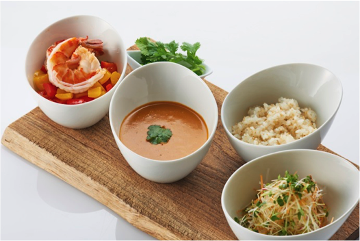 Characteristics: The main dish is the rich and spicy red curry. Rice eaten with the curry contains quinoa. The side dish is broccoli spout salad with antioxidant and weight-loss effects. Dessert is acai and yogurt parfait.