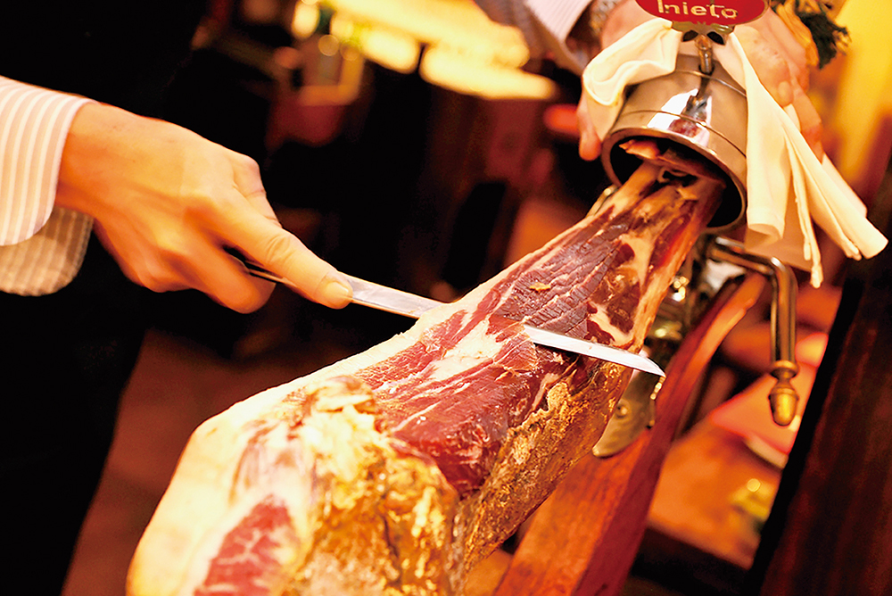 Cutting demonstration of “Jamon Ibérico Bellota”, the pinnacle of Spanish gourmet food