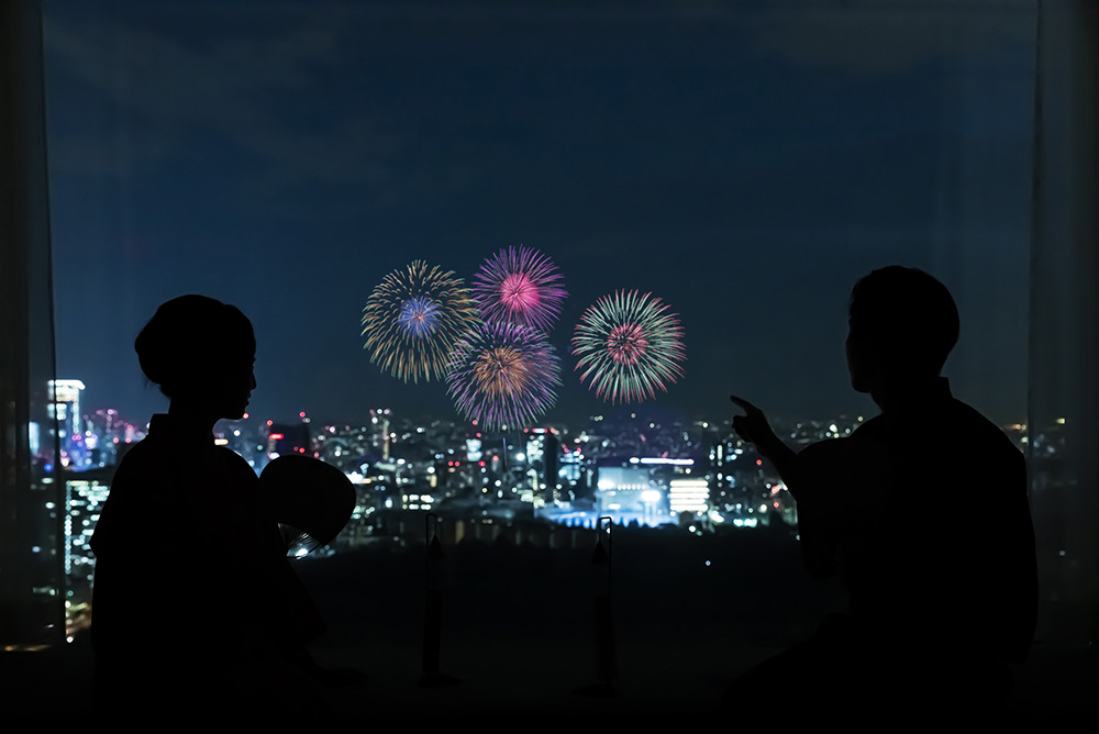 Experience the fireworks from a daybed by the window. Enjoy the view in casual comfort—consider wearing the traditional yukata provided in your room.