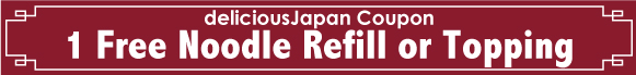 | deliciousJapan coupon | 1 Free Noodle Refill or Topping |