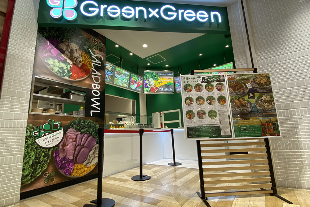 Green×Green is a specialty store that offers fresh vegetable salad bowls and vegetable/fruit juice. In addition to hearty meats like original herb chicken and roasted pork, they offer various toppings that are beneficial for beauty and health, such as edible collagen, seaweed noodles, and nuts. You can enjoy creating your own salad by combining dressings and choosing from over 600,000 options!